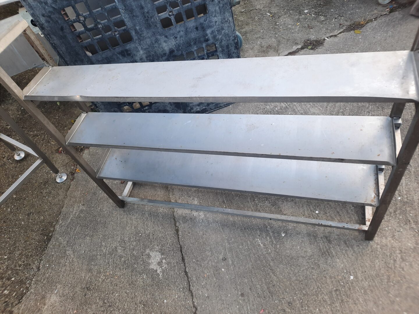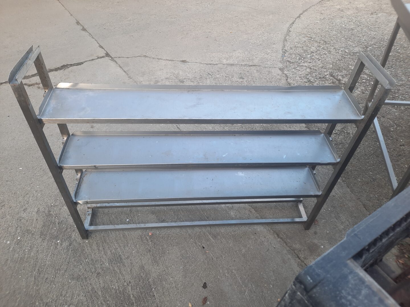 Raft din inox, cu 4 polite, dimensiuni de 140×25 cm.