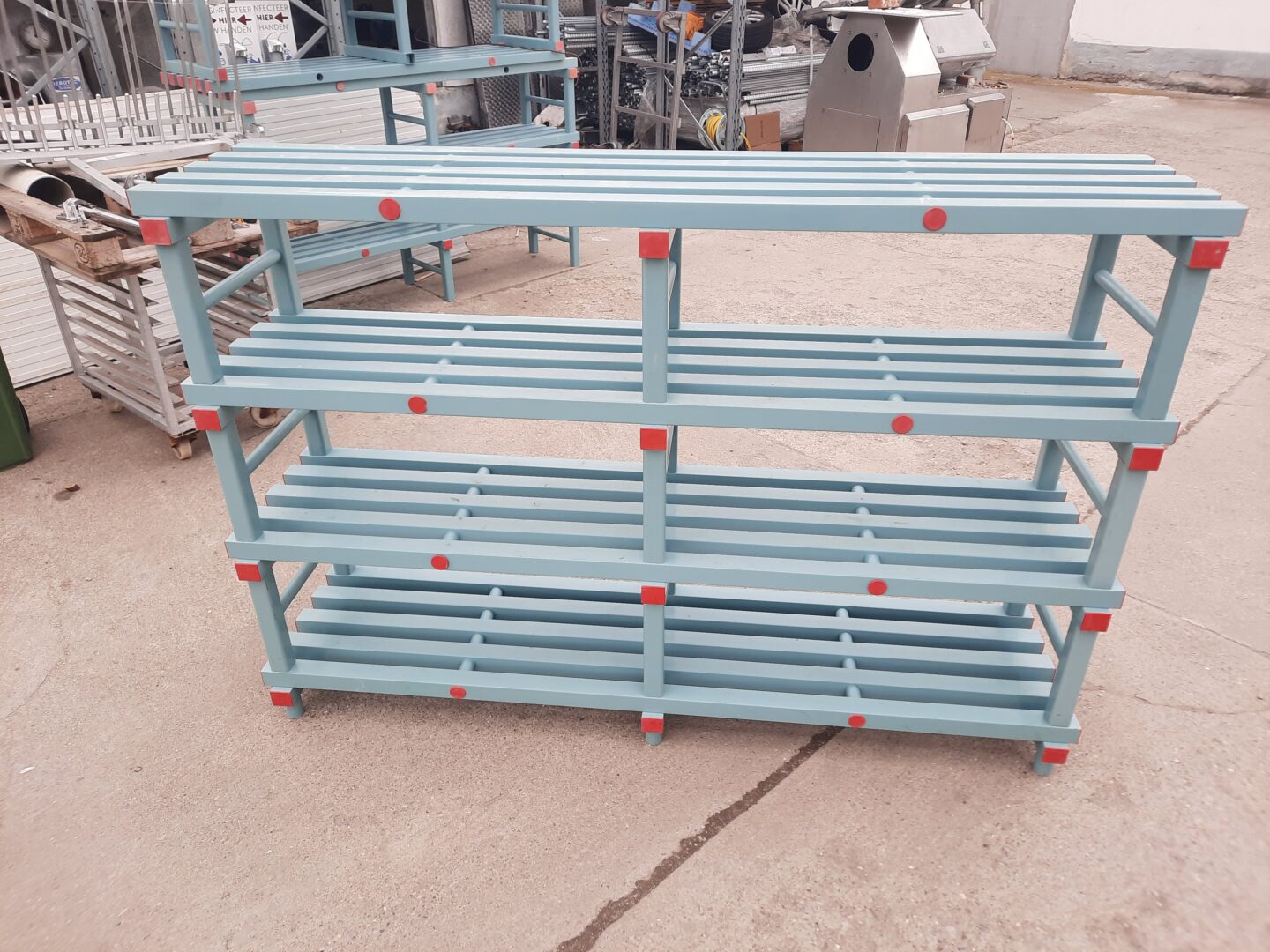 Raft din plastic marca REA, cu 4 polite, cu latime de 200 cm si adancime de 50 cm.