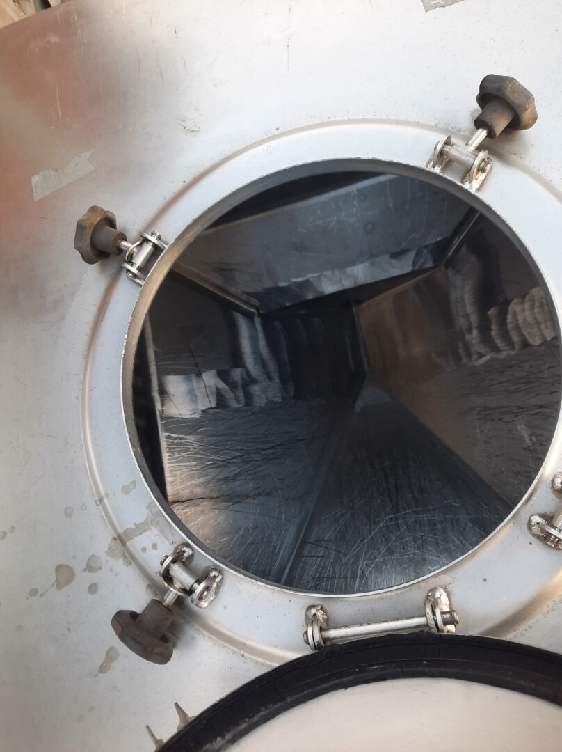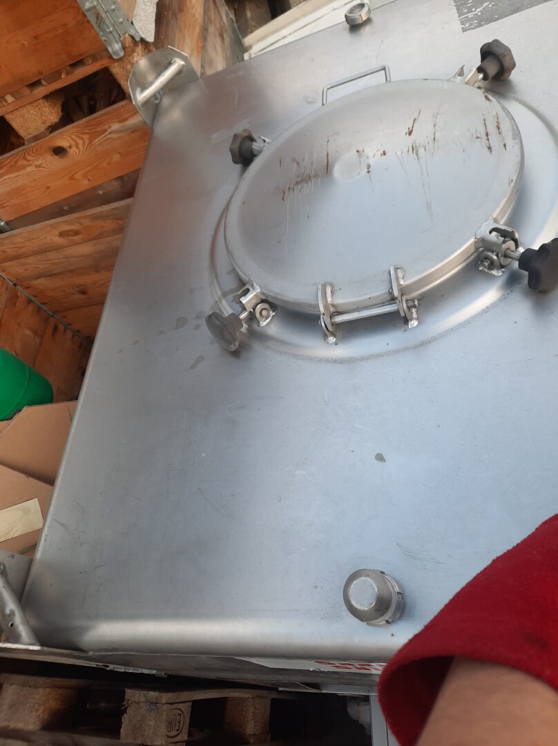 Rezervor din inox, capacitate de 800 l, prevazut cu capac superior cu balamale si suruburi de blocare si cu golire la partea inferioara, cu robinet.