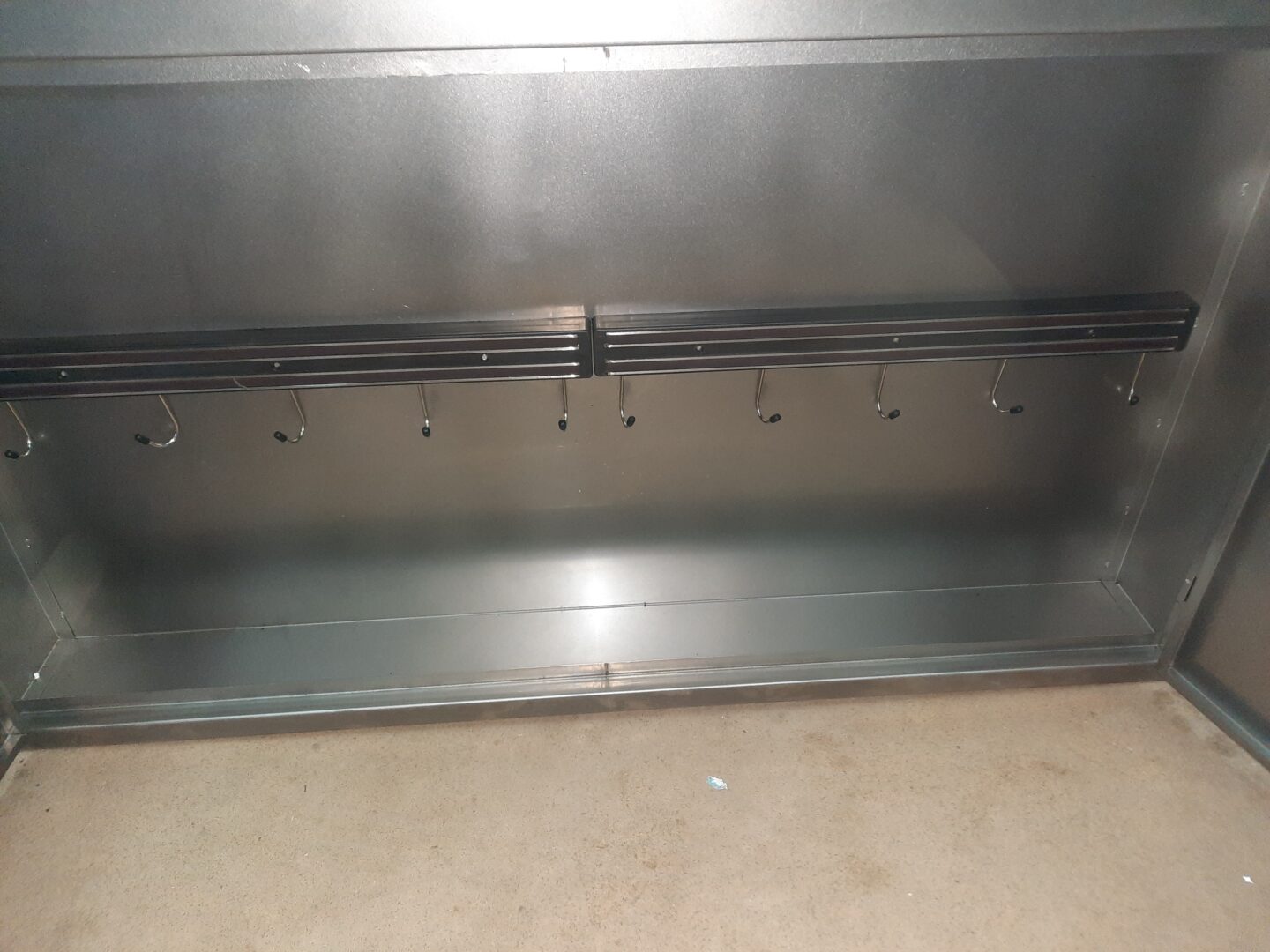 Echipat cu 2 benzi magnetice si 10 carlige din inox pentru depozitarea articolelor de sterilizat.